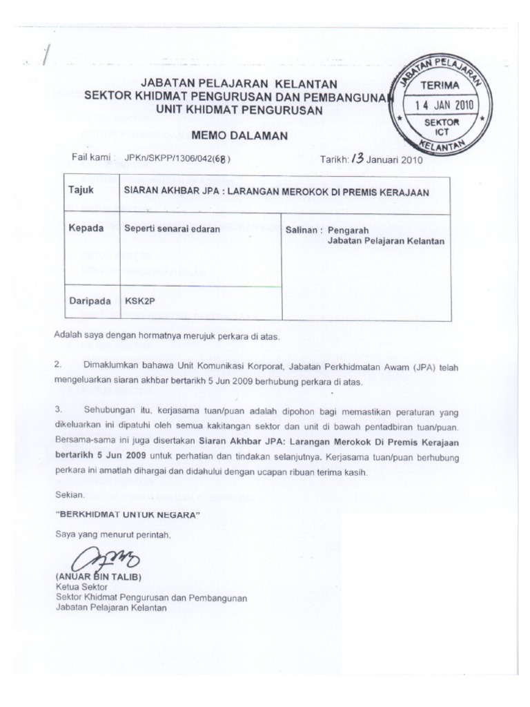 Contoh Surat Larangan Merokok Di Tempat Kerja